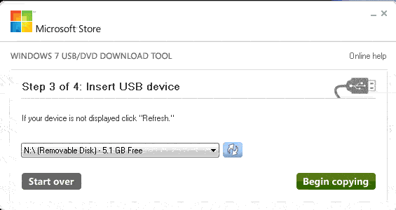 Pilih lokasi USB Flasdisk sahabat kemudian klik Begin copying